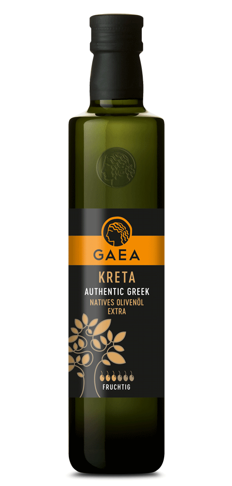 KRETA NATIVES OLIVENÖL EXTRA Kreta Kolymbari D.O.P, geschützte Ursprungsbezeichnung. Mild-fruchtig, überwiegend reife Noten, gefolgt von Artischocke und Mandel. Kreta Natives Olivenöl Extra Typisches kretisches Olivenöl, wie es schon seit über 2000 Jahren in den alten Olivenhainen geerntet wird. Das Besondere an GAEA Kreta ist sein ausgewogener harmonischer Geschmack, gewonnen aus 100% sortenreinen Koroneiki Oliven.